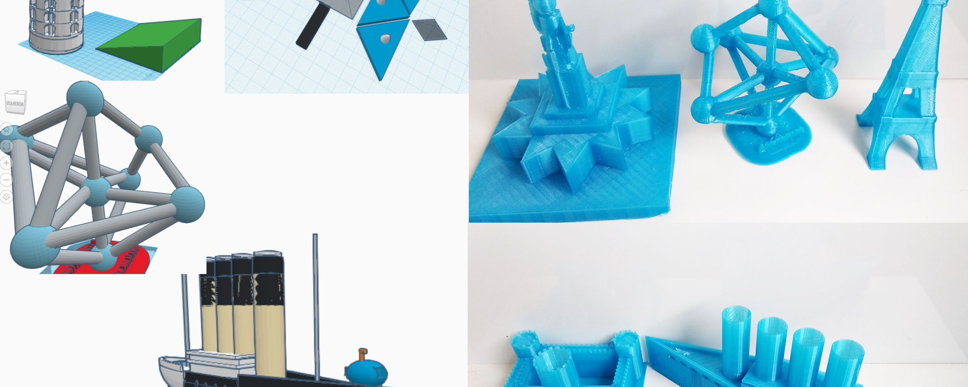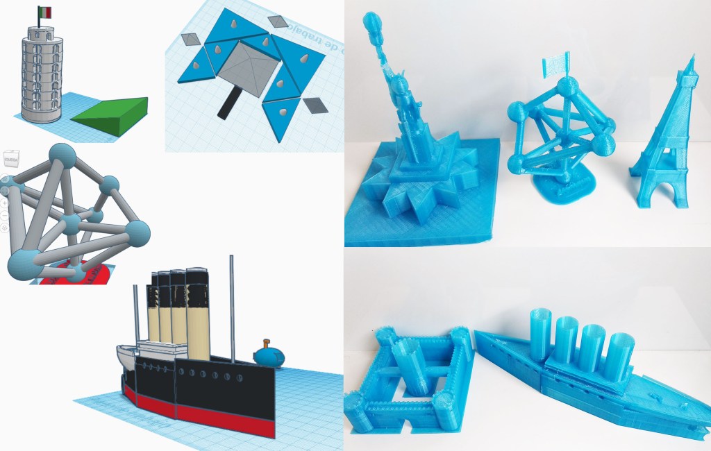 Para iniciarse en este mundo, los alumnos de 6º de Primaria han diseñado llaveros y figuras personalizados que hemos impreso en la impresora 3D del colegio. Los alumnos de 1º y 2º ESO, más experimentados en el modelado 3D, han diseñado e impreso en 3D monumentos del mundo, que se expondrán en las Jornadas de Puertas Abiertas que tendrán lugar próximamente.
